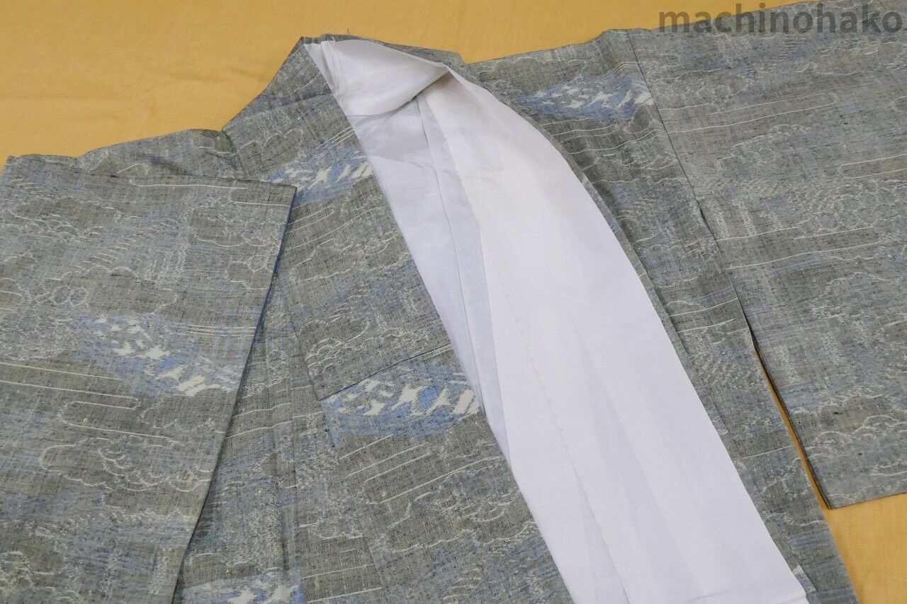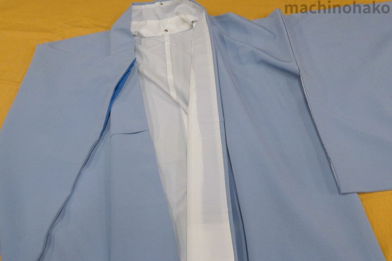 化繊 袷 長着水色