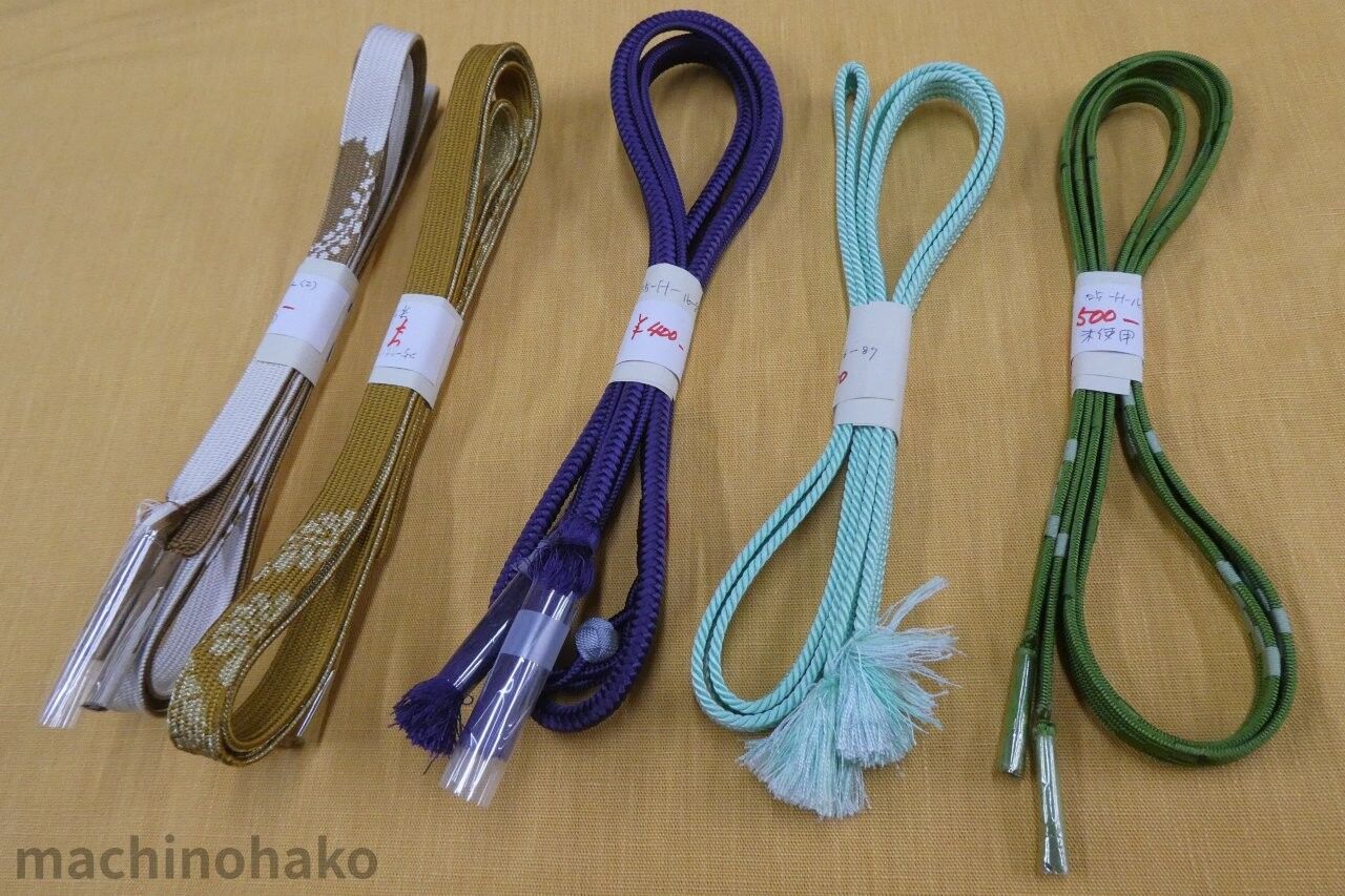 左から3本が帯〆、帯〆 ライトグリーン、帯〆 グリーン