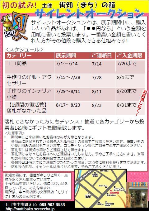 ・落札者様には、街知の箱からご連絡致します。14日19時までに