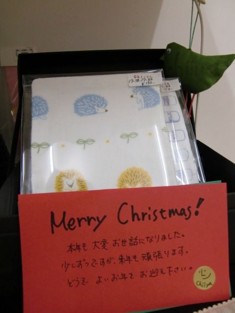 恒例とは言え、毎年違うプレゼント(しかも、手作り)を準備されていますよ。但し、プレゼントの数に限りがございますので、お早目にどうぞ!