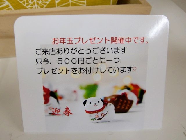 実は、新年1月4日からこの場所で500円以上お買い上げの方にはしーたさんから恒例のお年玉プレゼントがございます。