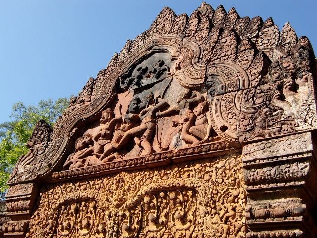 そして、ツーリング中、視界に入る畑や木から何が収穫できるかも教えてくれました。ただ、「あの実は、美味しいんだ」と彼が言った木は、何ができるかが良く分かりませんでした。「もしかしてカシューナッツの木?」と聞くと、「英語は分からないけど、赤い実がなる」と言われました。でも、私はカシュ―ナッツが赤い実なのかも知らないので判断がつきませんでした。ベンメリアのチケット売り場に着いたときに、収穫作業の動画を見せられましたが、チンプンカンプンでした。彼がスマホのカンボジア語英語辞書を使って、やっとカシュ―ナッツの木ということが分かりました。カシューナッツは日本語だと英語をそのまま使いますが、カンボジアでは外来語じゃないんですね。