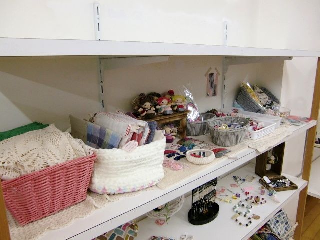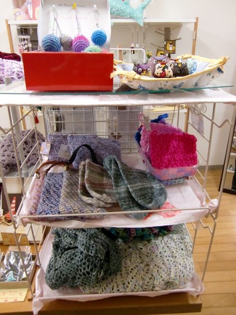 まんまるポーチは、左側の最初の棚、上から2段目にございます。ぜひご覧ください。