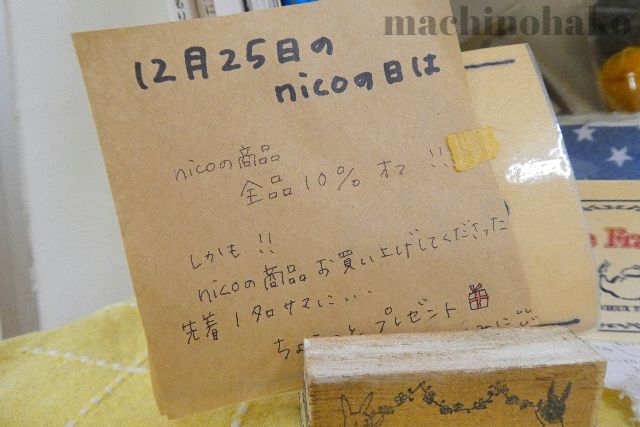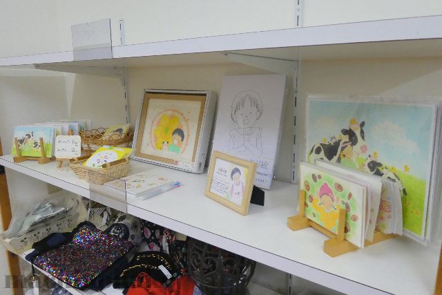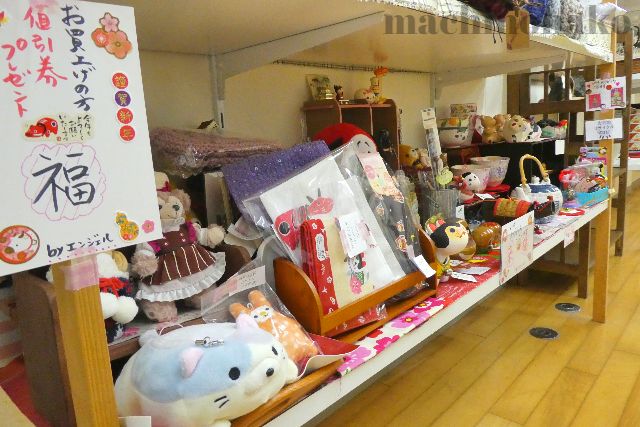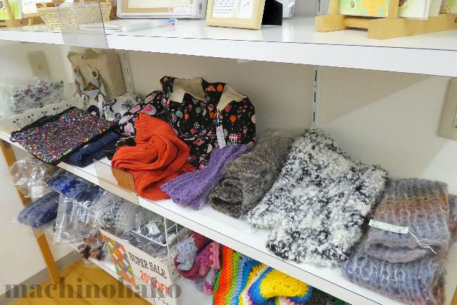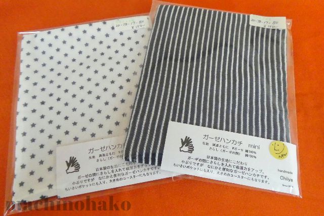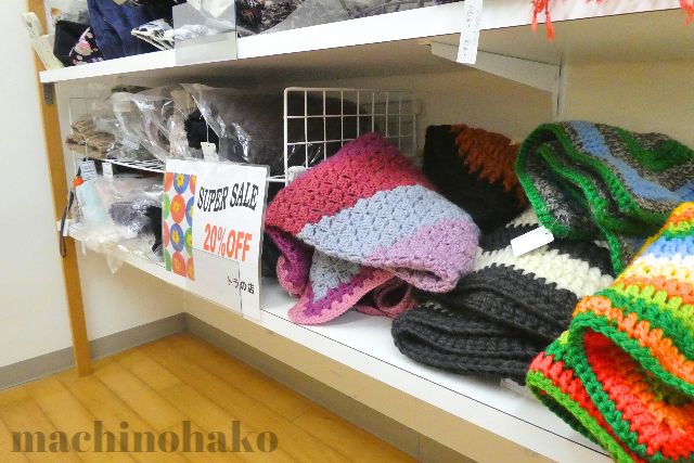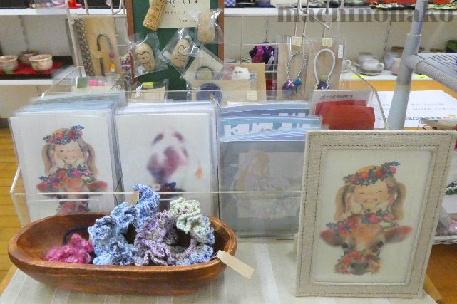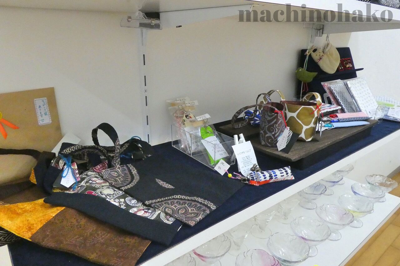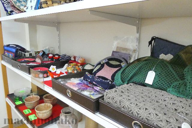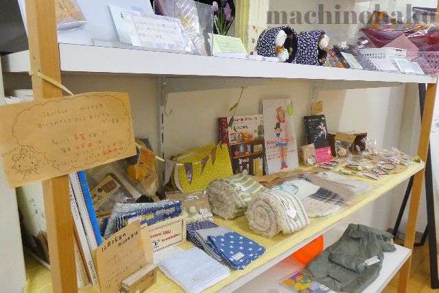 Sサイズの手さげバックとガーゼハンカチ mini Newは、一番奥のギャラリースペース左側の棚、中段にございます。