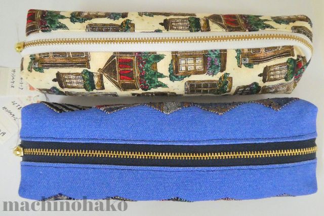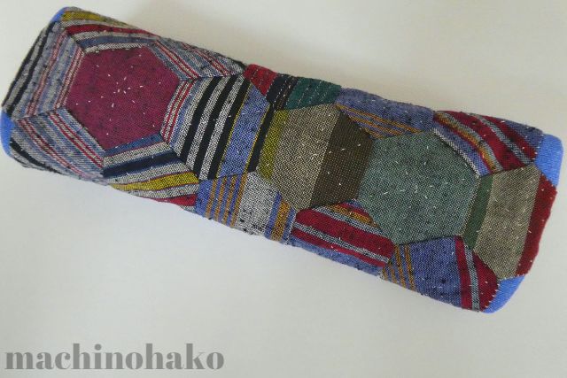 ブルーのペンケースの底面には角がきっちりと揃ったパッチワークが施されています。