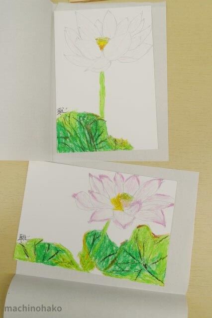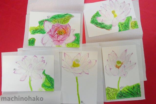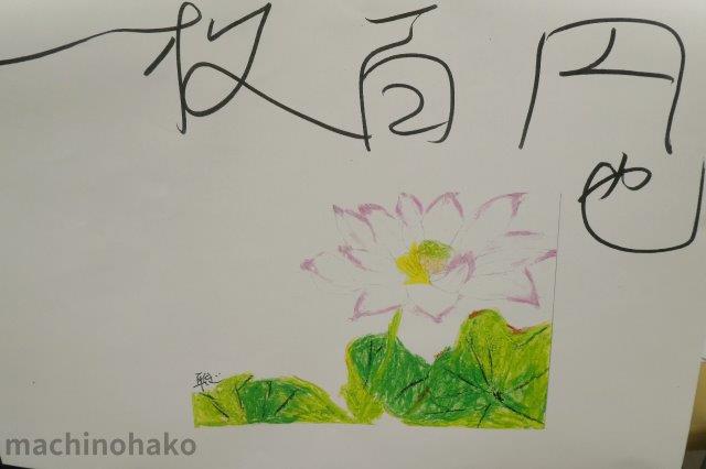 本日のテーマは蓮の花です。そして、久し振りにクレヨンで描かれました。