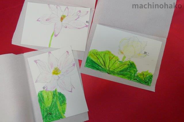 いつものポストカード用の袋に入れると、クレヨンがくっつくということで、半紙で包んでいらっしゃいます。