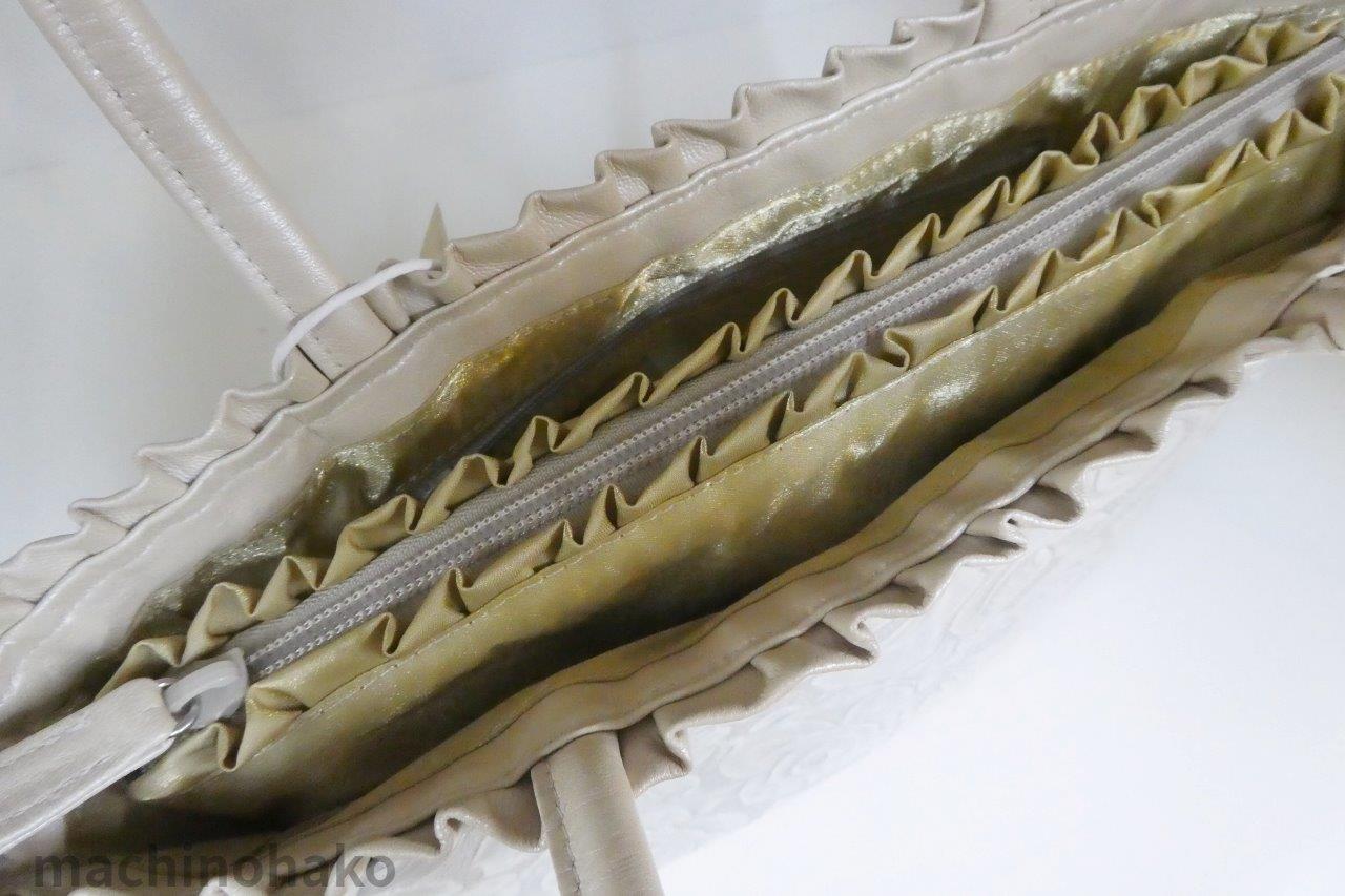 重厚感に反し、持つと軽いです。この背面にはファスナーポケット、中にはガラケー用ポケットとポケット、その向かいにファスナーポケットがございます。4900円です。