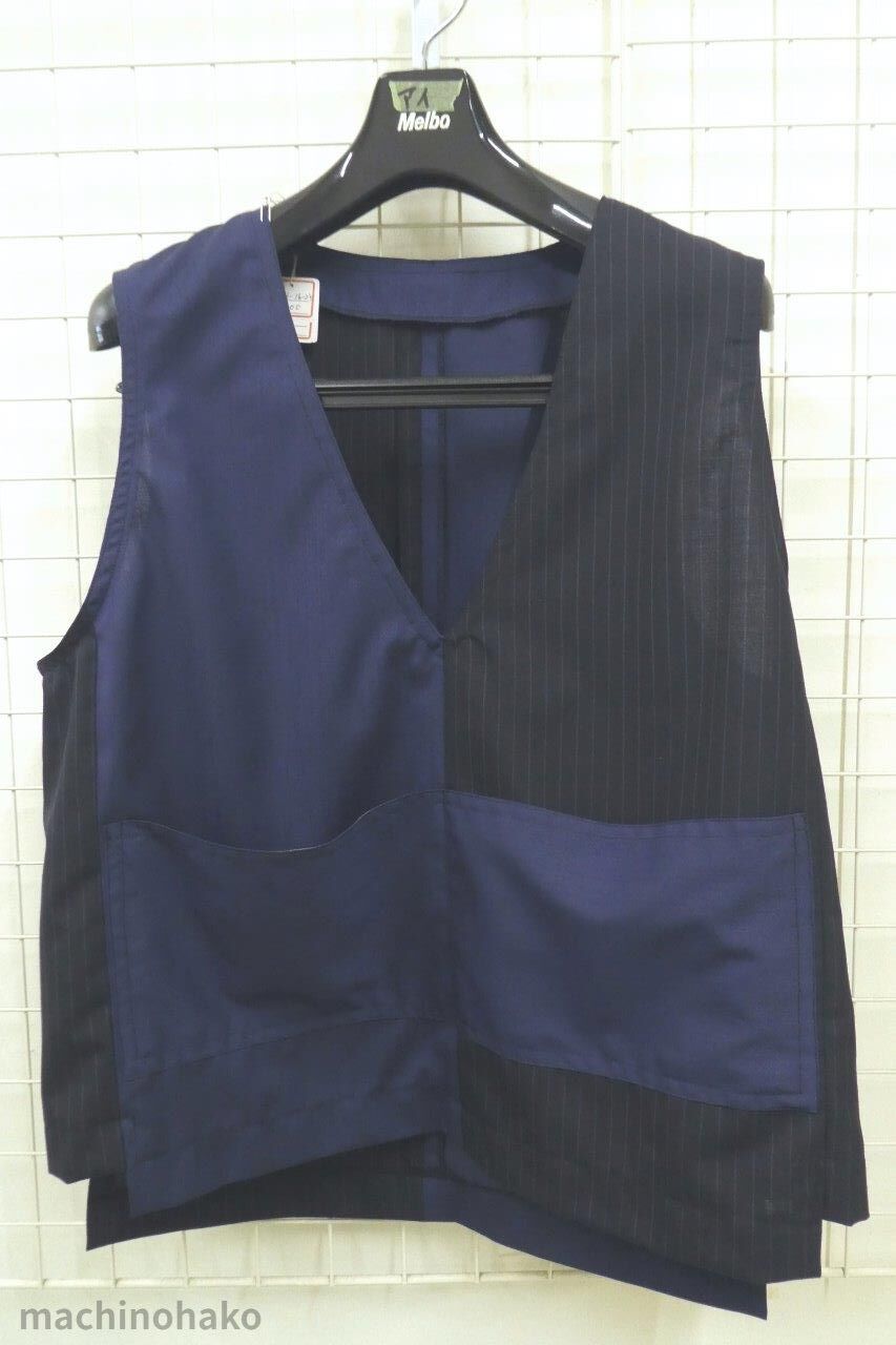 ウール混の紳士服の生地を2種類使って作られました。前にポケットが2つ付いています。フリーサイズです。ネットとオシャレ着用洗剤を使って洗濯機で洗えます。