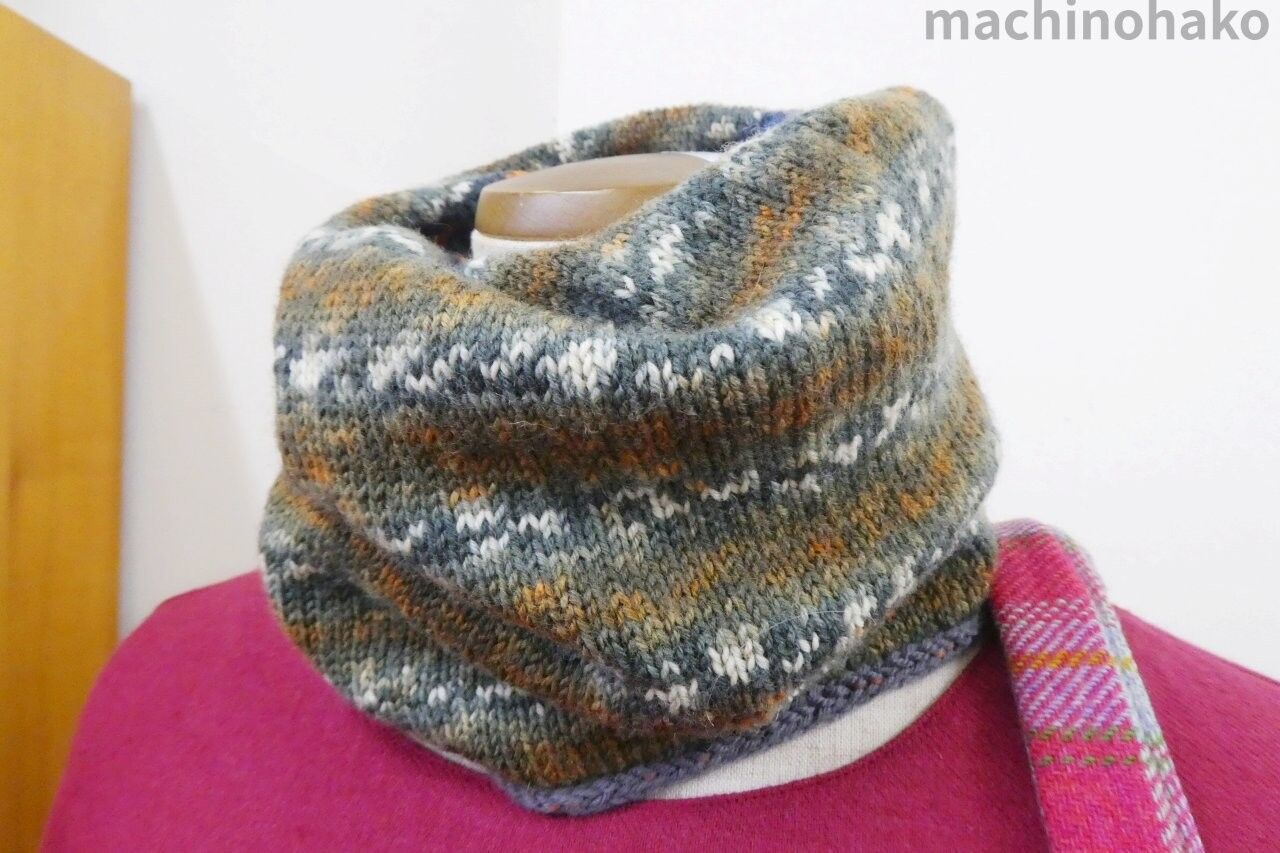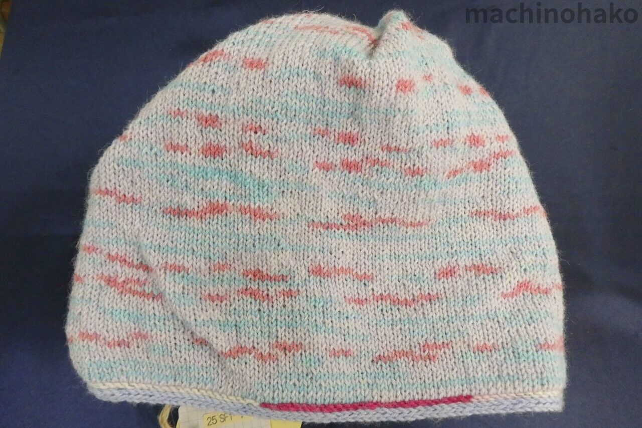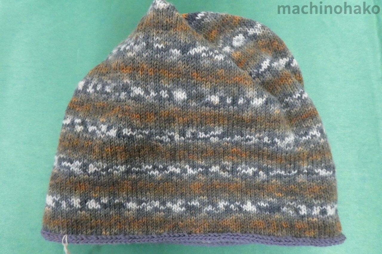 もう1点、別のドイツ製の糸で同じ形を編まれています。こちらもリバーシブルで、頭頂部が開くので、ネックウォーマーにもなります。