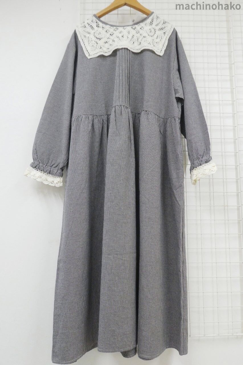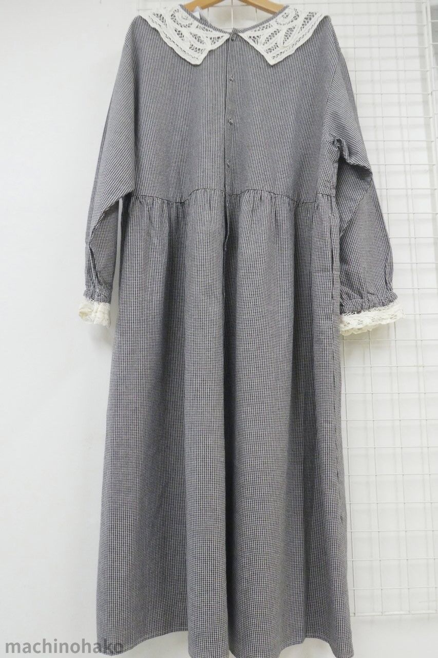 SM2 黒×白ギンガムチェック ワンピース(白レースえり)