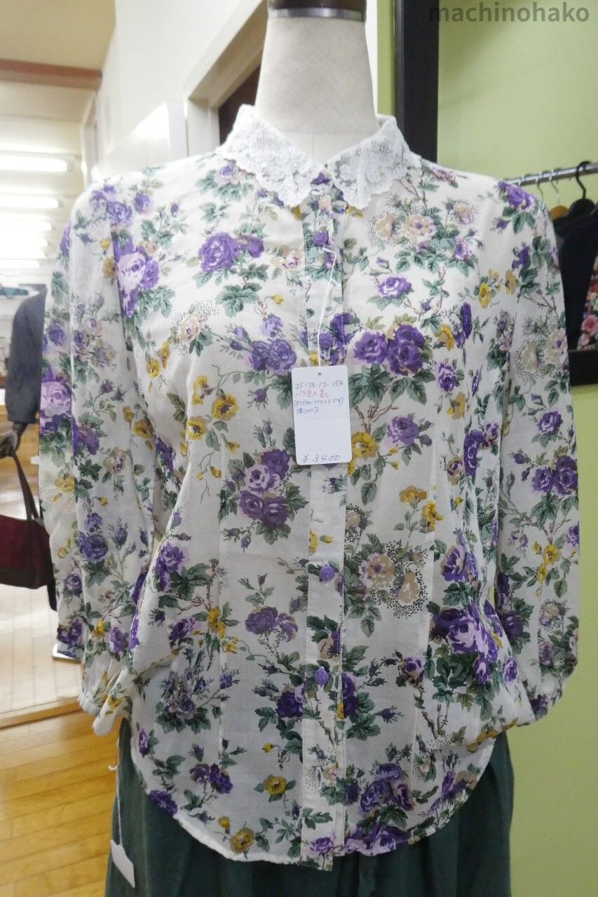 バラ色の暮らし花柄ブラウス(レースえり)