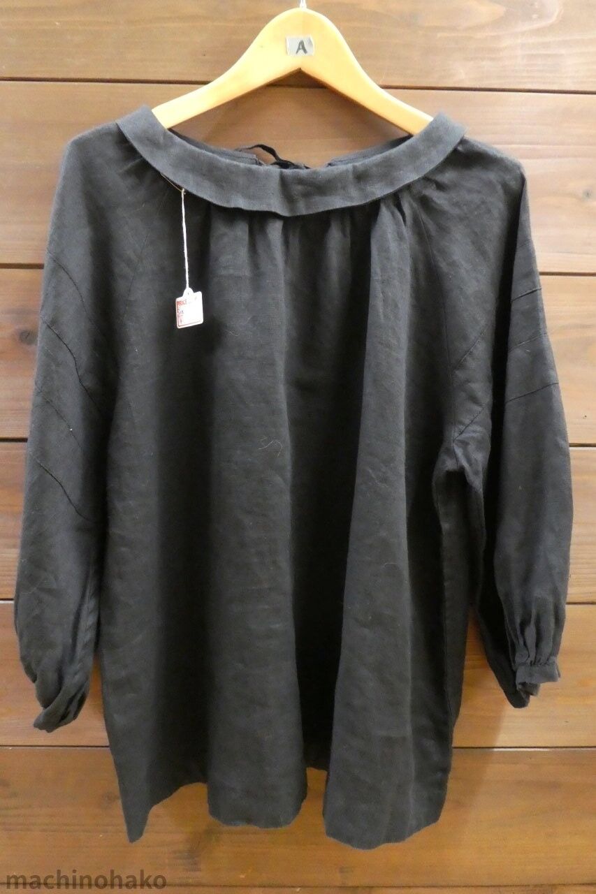 黒ロールカラー麻ブラウス後ろリボン(メルローズ)