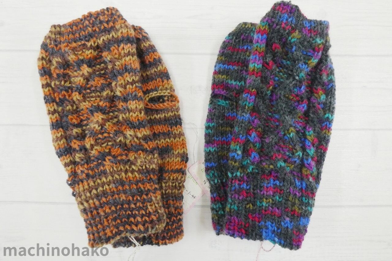 手の甲と手首を温めながら、指先でスマホやATMの操作などができますよ。両方、ポリエステル100%の糸で編まれています。汚れが気になったら、手洗いをお願いします。