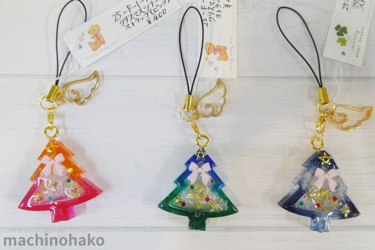 クリスマスツリーストラップ(ピンク)、クリスマスツリーストラップ(緑)、クリスマスツリーストラップ(紺)