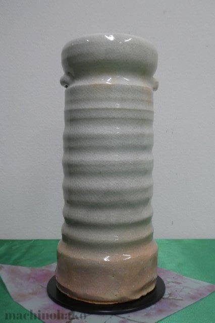 口径の内側(内径)は約6.5cm、口径の外側は約8.5cm、高さは約24.5cm、底の直径は約8cmです。陶器なので、簡単に倒れない重量感はありますが、持ち運べない重さではありません。箱、陶歴などはございませんが、シミ、ひび、傷は見当たりませんでした。保存状態の良い花器です。【エントリーナンバー④】