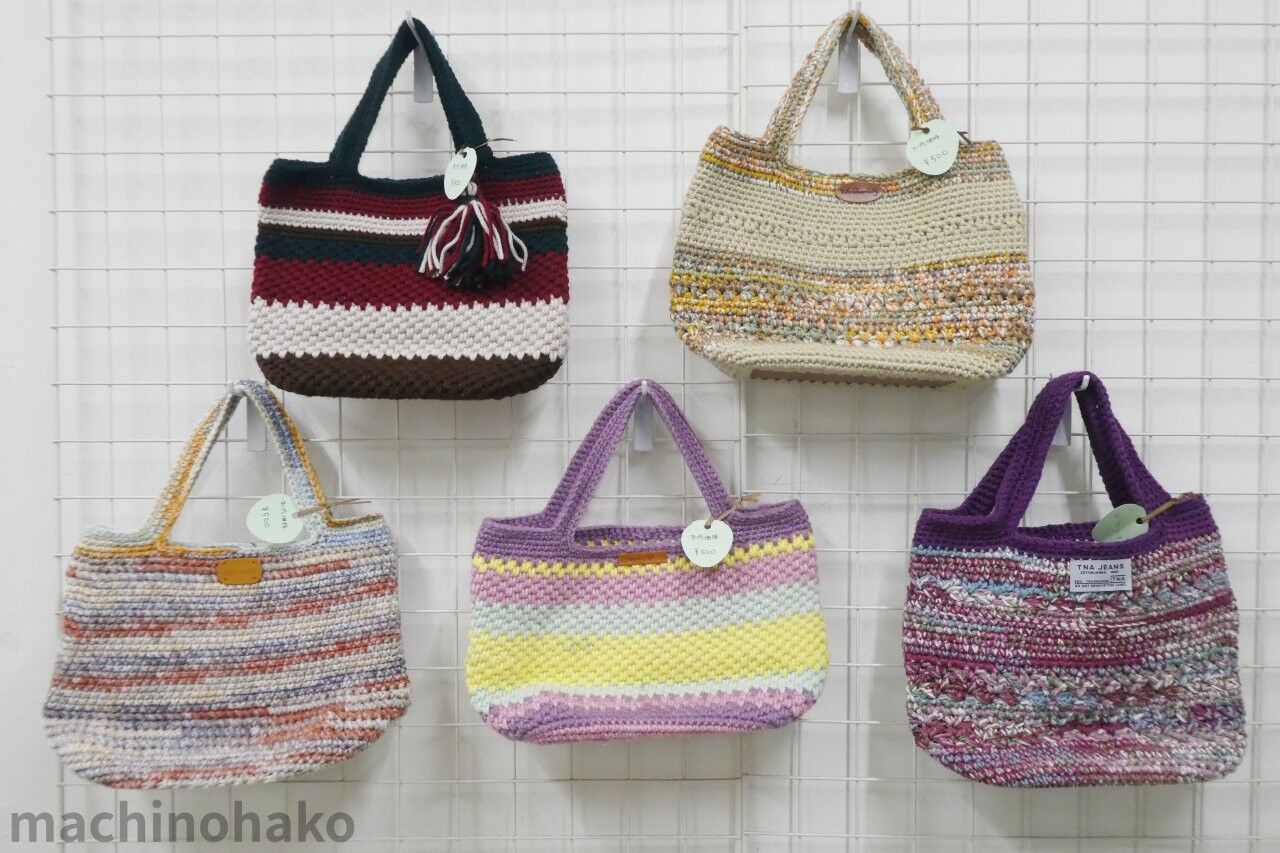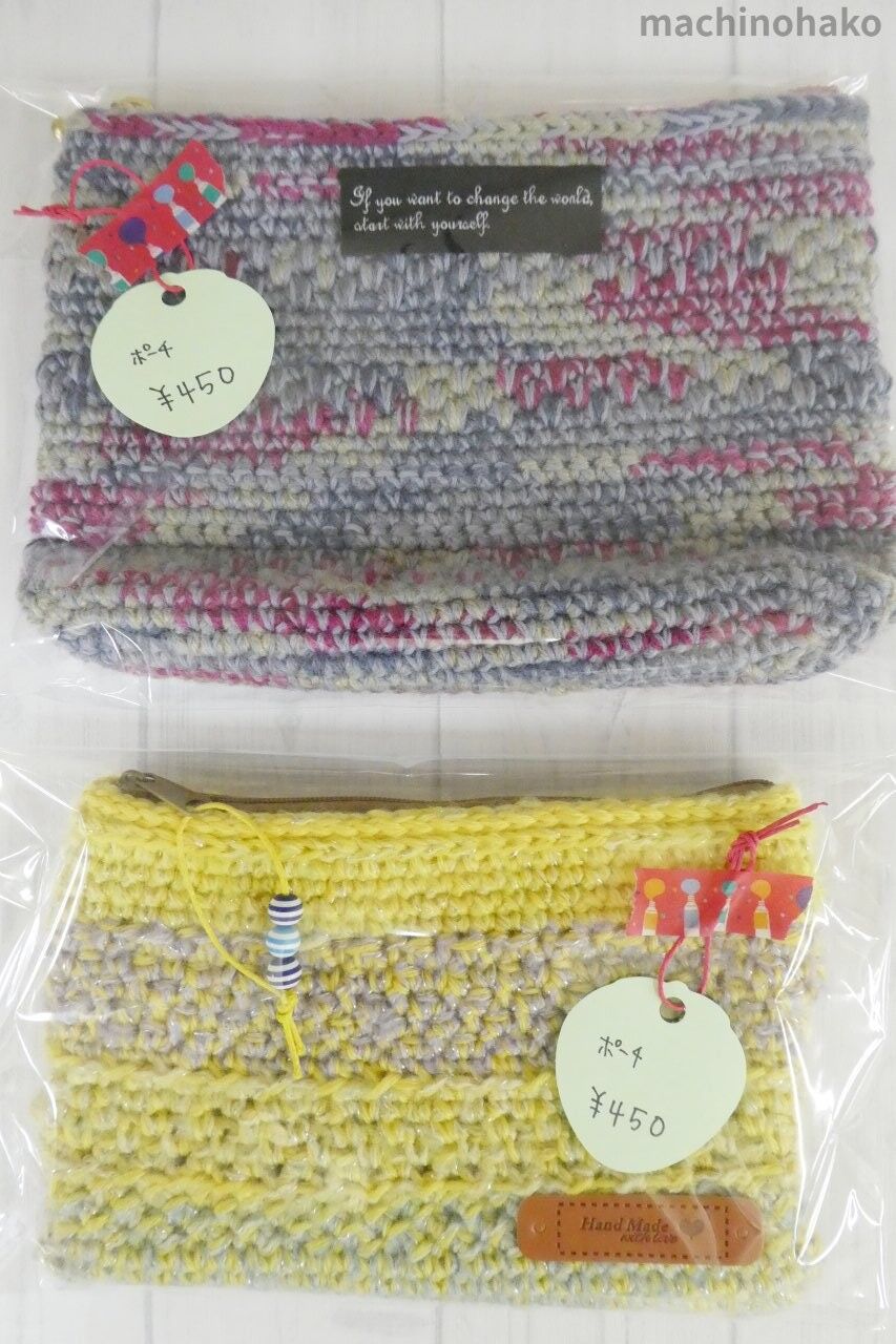 この度の出店を記念して、どれでも500円です。底は毛糸でなく、毛糸用底板を使用されています。なので、底の型崩れがしにくいです。