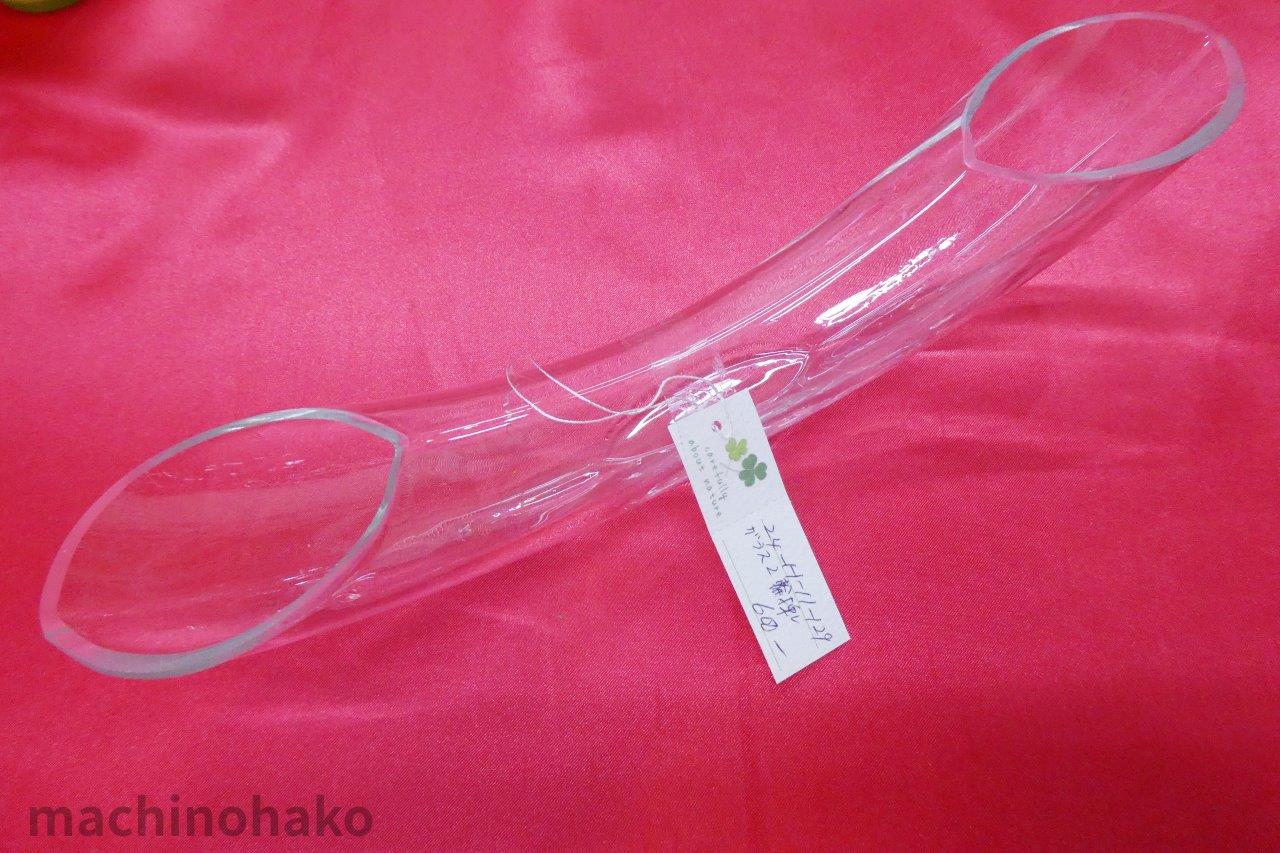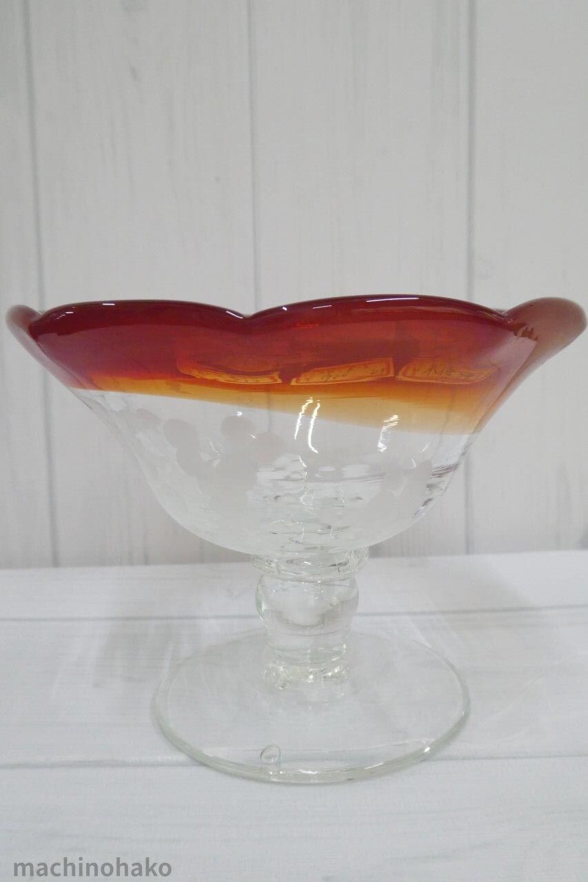 こちらのメーカーは不明です。パフェの容器にもなりそうですよね。台座部分に曇りガラスのような不透明な部分があります。200円でいかがですか?