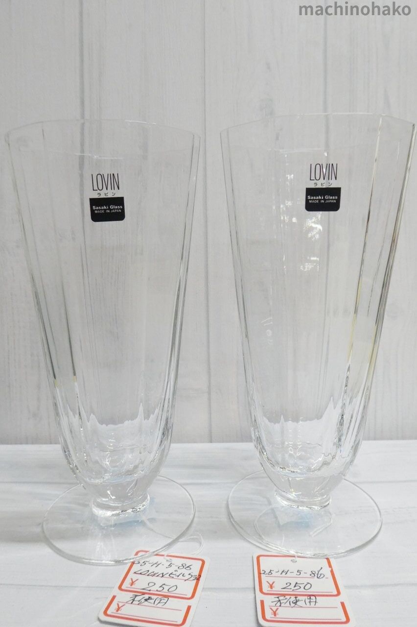 「LOVIN ラビン Sasaki Glass Made in Japan」のシールが付いたままの未使用品です。それぞれ250円です。