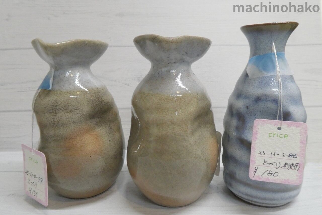 左の2点は、指が置けるくぼみと注ぎ口があるので、使いやすそうです。各150円です。右の1点は未使用で、花瓶にもなりそうですよね。こちらは180円です。