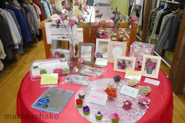底に磁石が付いています。おしゃれですよね。ちなみに、花小物さんがハンドメイドの昨年下半期1位でしたので、店頭の丸テーブルに飾られています。