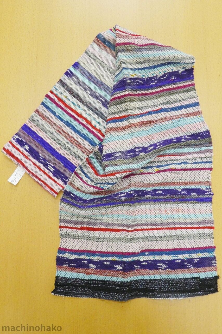 さき織を販売している場所から購入されたけど、端のほつれ処理による硬化部分が気になり、置いたままだったとの事です。2200円です。テーブルランナーとしてもどうぞ♪