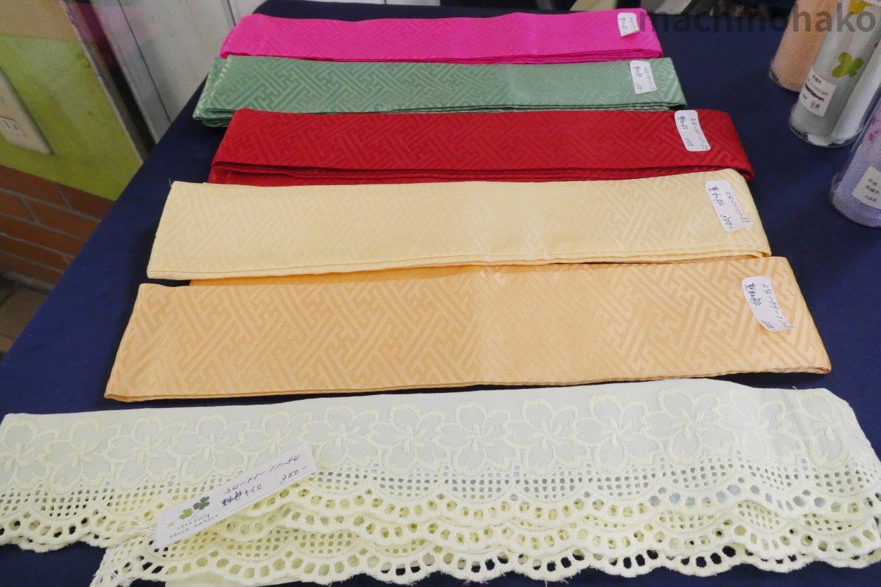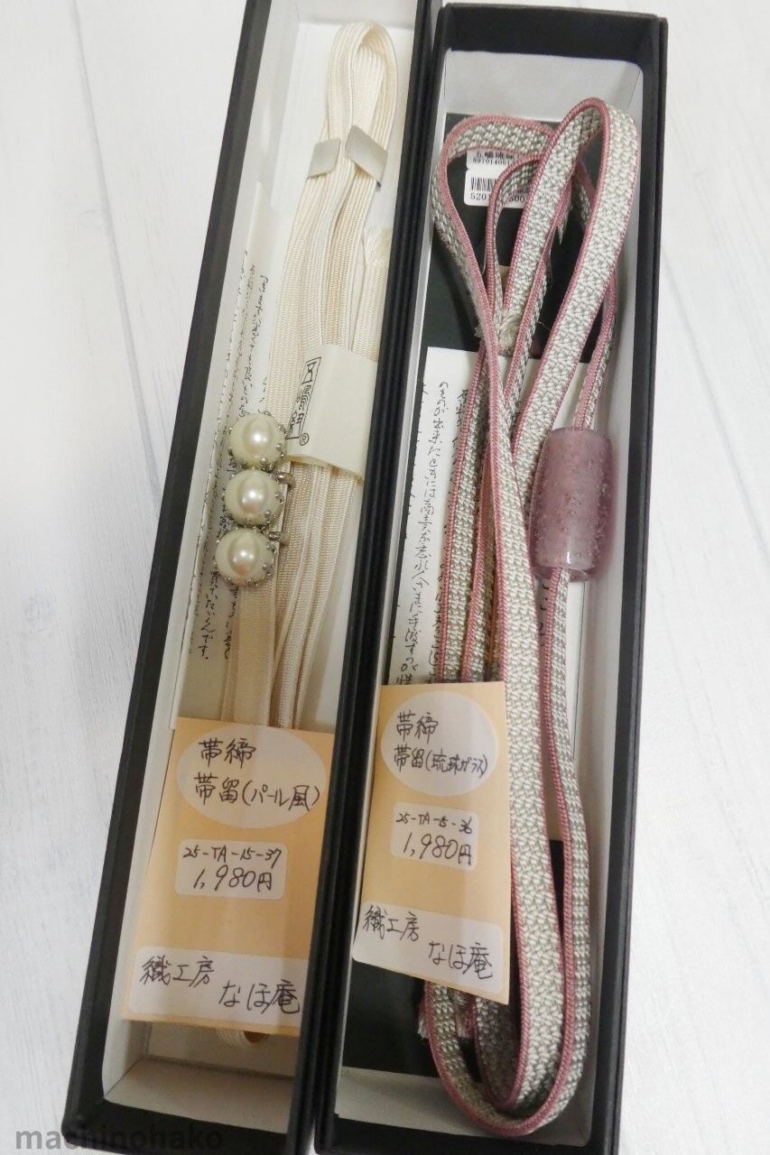 これらは使用されていますが、使用感が目立たない帯じめです。それぞれ400円です。他にも振袖用もございますよ!