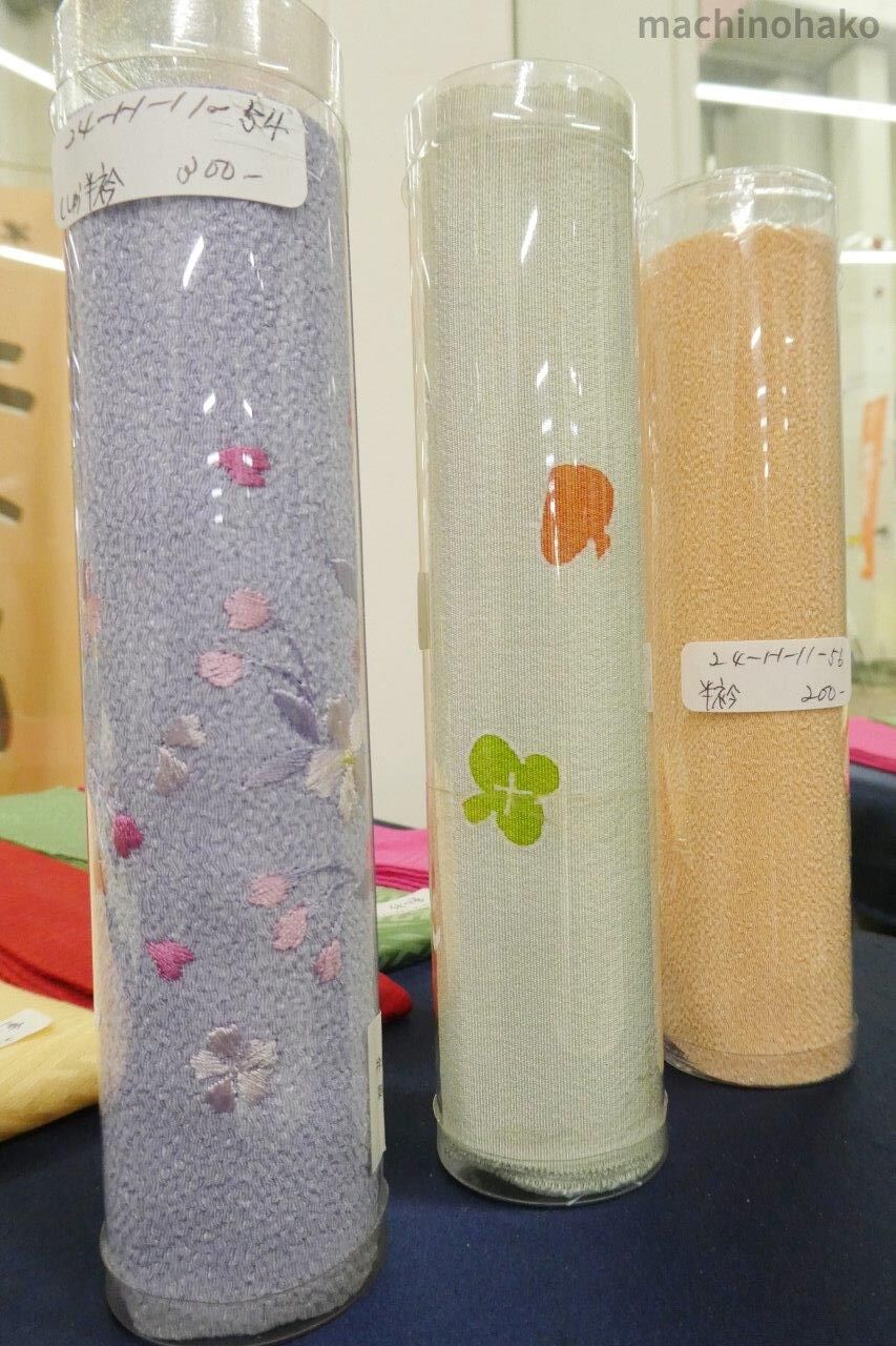 着物の衿元に差し込んで、複数の着物を重ねて着てみせる装飾品です。各300円です。もう少し幅が狭い伊達衿も200円で出していらっしゃいます。